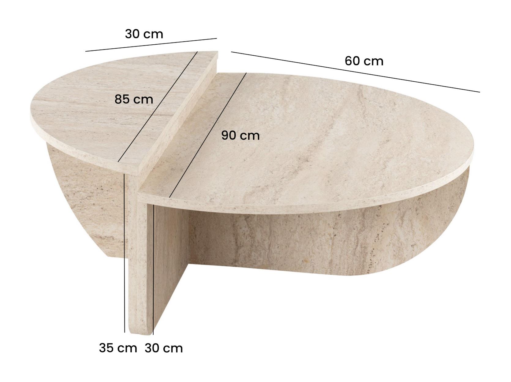 El lote de mesas de centro ALOEVA se distingue por su estético y trabajado acabado que aportará un toque artístico a tu salón. Puedes yuxtaponer las dos partes como más te guste.